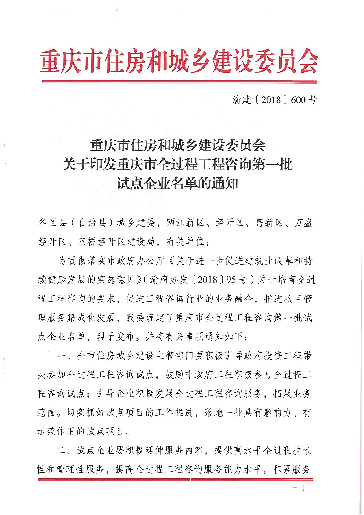 開拓進取,銳勁勃發!——重慶宏達招標代理有限公司成為重慶市全過程工程咨詢第一批試點企業 為積極響應國家政策號召,促進和提高行業服務質量以及項目品質,有效規避風險,加快建筑業改革和持續健康發展。根據《關于進一步促進建筑業改革和持續健康發展的實施意見》(渝府辦發[2018]95號)文件精神,重慶市住房和城鄉建設委員會于2018年10月31日發布了《重慶市住房和城鄉建設委員會關于印發重慶市全過程工程咨詢第一批試點企業名單的通知》(渝建[2018]600號) 按《通知》公布,主管部門篩選通過了全市39家建筑業相關單位,重慶市全過程工程咨詢第一批試點企業,重慶宏達招標代理有限公司獲得提名,有幸成為重慶市全過程工程咨詢第一批試點企業一員。 作為一家數十年將招投標交易方式用于工程建設項目的施工以及貨物、勘察設計、項目融資、咨詢、政府采購、企業采購服務的專業機構,重慶宏達招標代理有限公司在致力于提高服務質量,拓展業務范圍的同時,積極響應政府關于培育全過程工程咨詢的要求,配合相關行政主管部門進行的各項措施調整改革,全力整合資源,不斷延伸服務領域,積極推進全過程工程咨詢服務。 近幾年來,公司在招標代理、工程造價、工程咨詢等業務范圍內都取得了可喜的成績。重慶宏達招標代理有限公司將緊緊抓住成為重慶市全過程工程咨詢第一批試點企業這一契機,秉持著“穩抓穩打,提高質量,把握機遇,開拓進取!”的理念,不辱使命,在拓展之路上不斷探索,進一步提高全過程咨詢服務和管理水平。 |